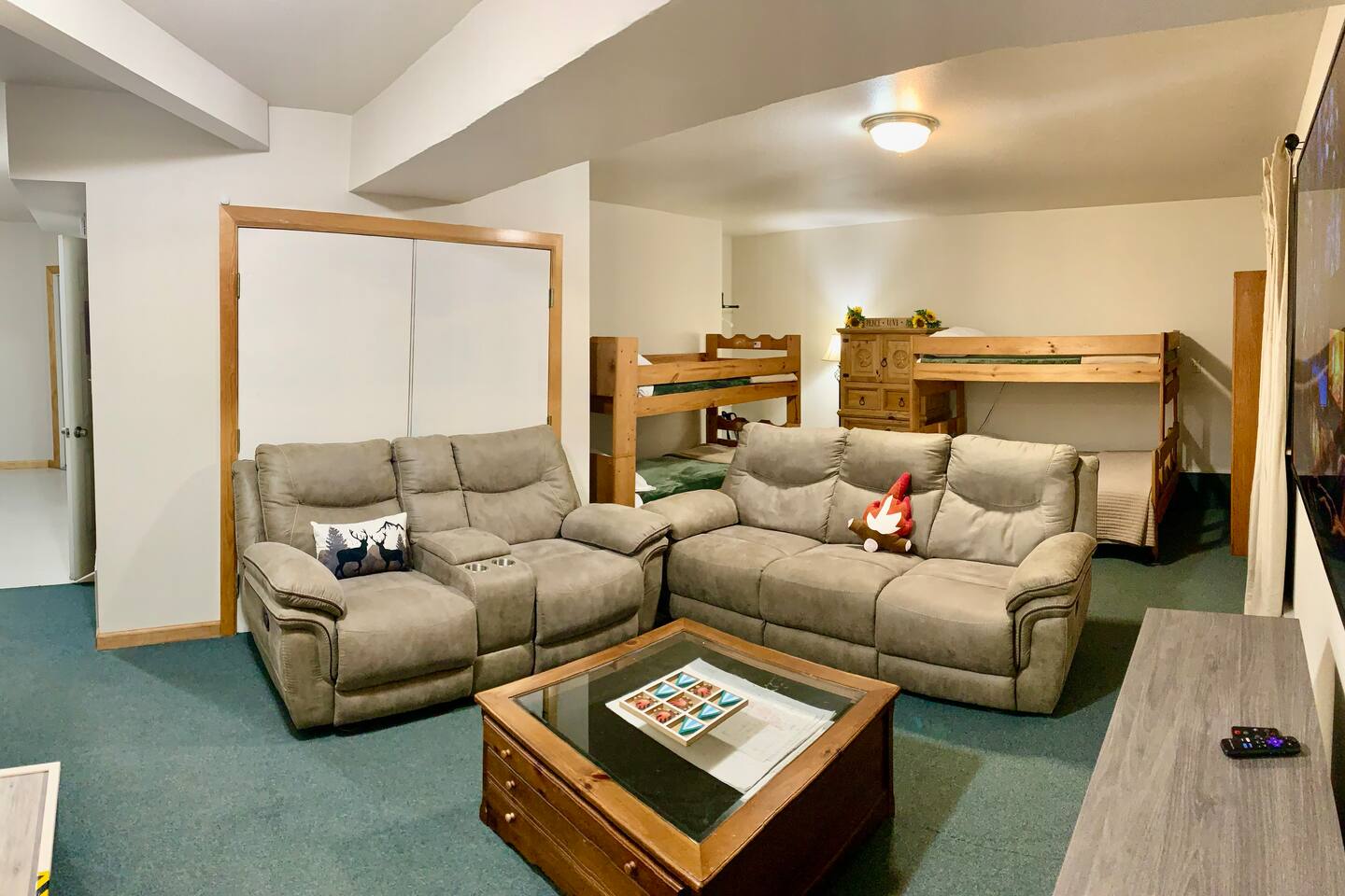 4 full-sized bedrooms that can comfortably sleep up to 12. MASTER BEDROOM: 1 king bed 1 foldout twin bed Smart TV BEDROOM 1: 1 Queen bed Smart TV BEDROOM 2: 1 Queen bed Smart TV GAME ROOM/ KIDS ROOM 2 bunkbeds: 3 twin beds & 1 full bed Air hockey & ping pong table Smart TV KITCHEN Fully stocked kitchen to serve a family up to 12 Complimentary coffee A perfect getaway for a group of friends or a family reunion!