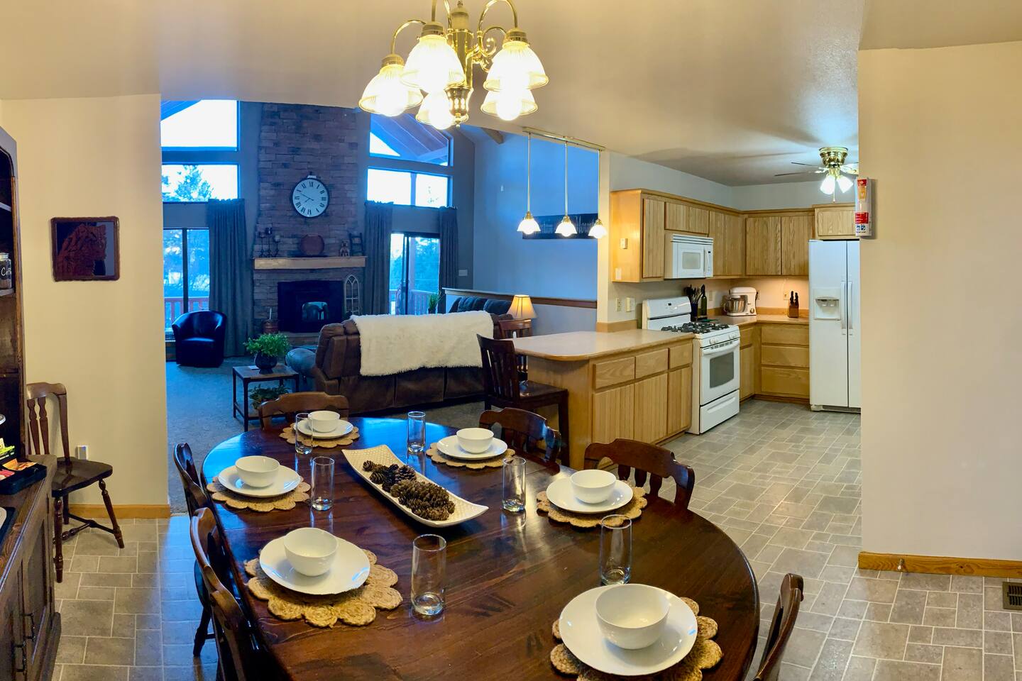 Bear Holler Cabin is located right inside The Village of Cloudcroft! Get ready to soak in beautiful views with wildlife just outside the windows. Entry to the main floor provides easy access if you have little ones or elderly family members. Our cabin is able to sleep up to 12 & is the perfect getaway for a group of friends or a family reunion! - 37 scenic trails nearby - 8 min Ski Cloudc - 30 min Sunspot Solar Observatory - 1 hr. drive White Sands National Park - 5 min Golf The Lodge
